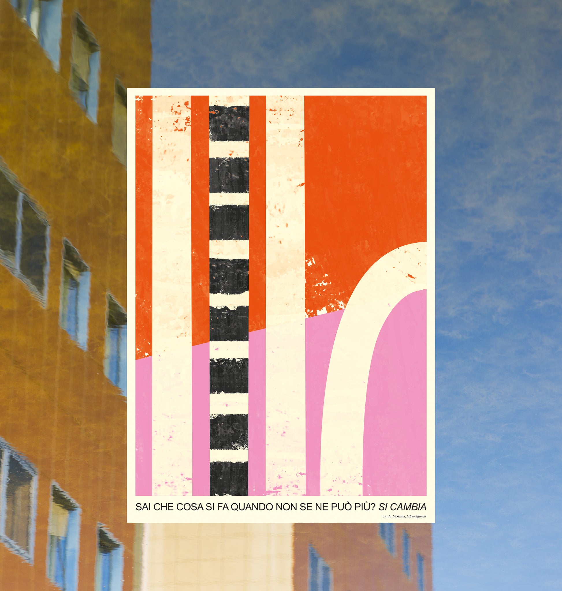 "Sai che cosa si fa quando non se ne può più? Si cambia" - manifesto dedicato al romanzo "Gli indifferenti" (Bompiani, 2016) di Alberto Moravia.