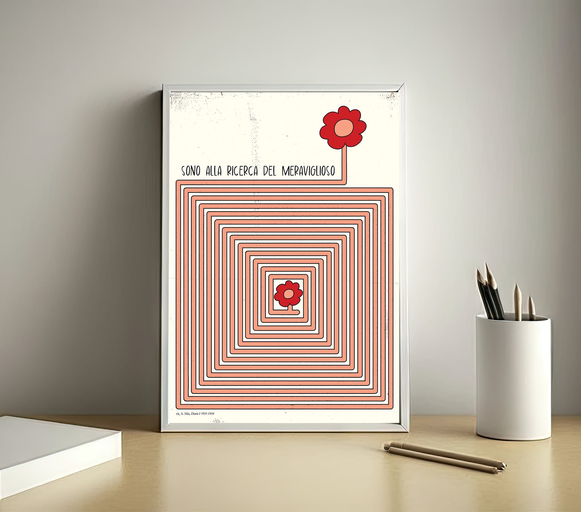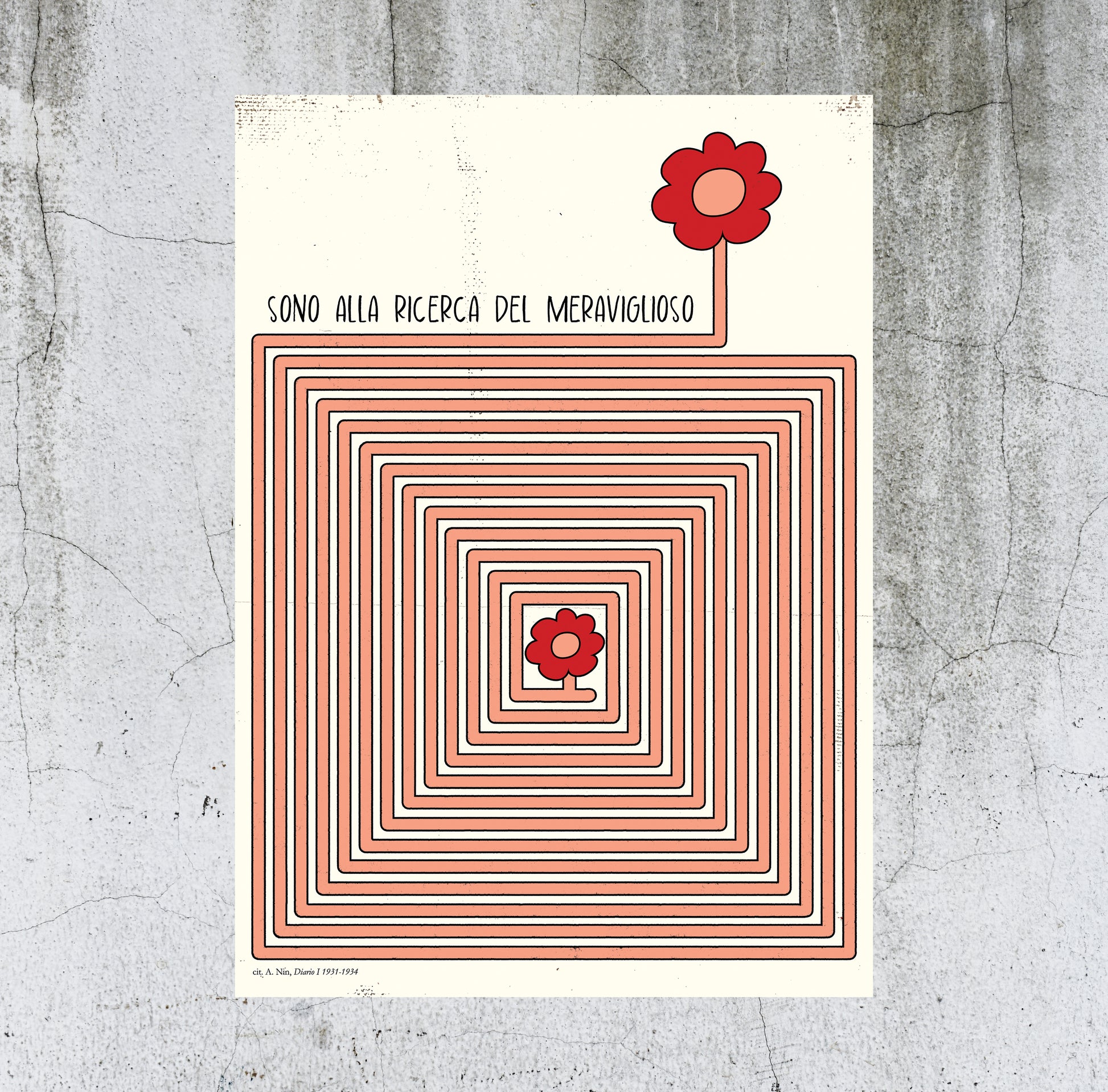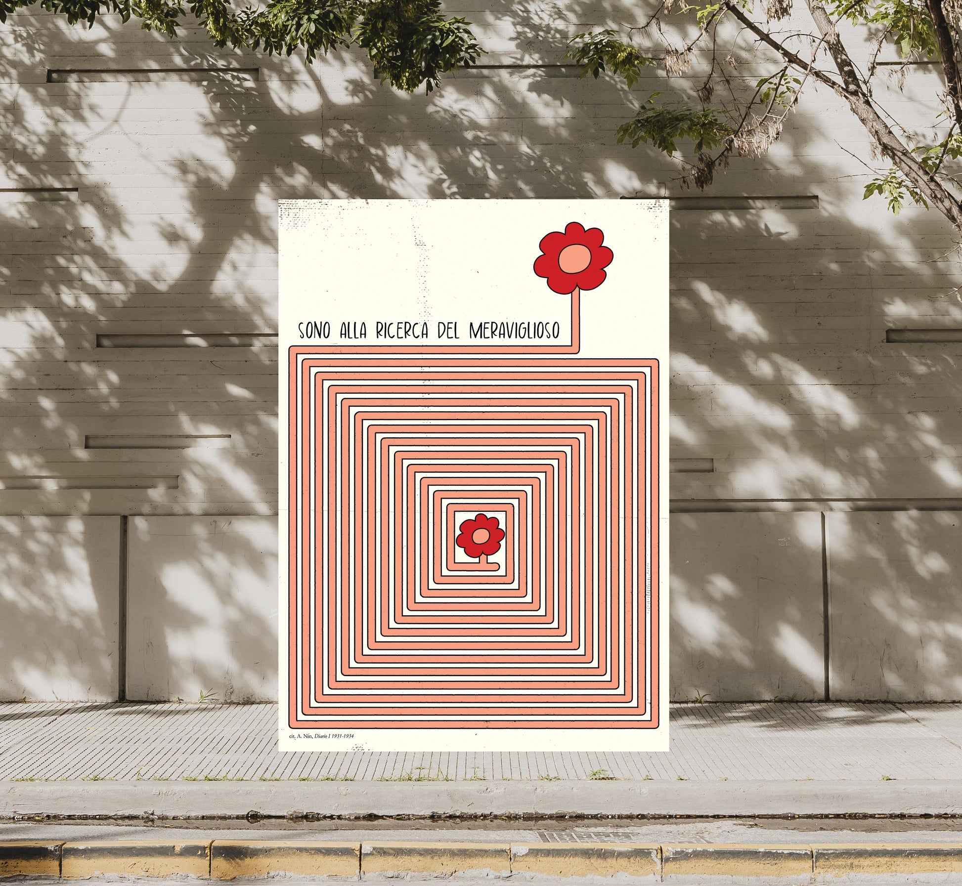 "Sono alla ricerca del meraviglioso" - manifesto dedicato alla scrittrice statunitense Anaïs Nin. La citazione è tratta da "Diario I 1931-1934"