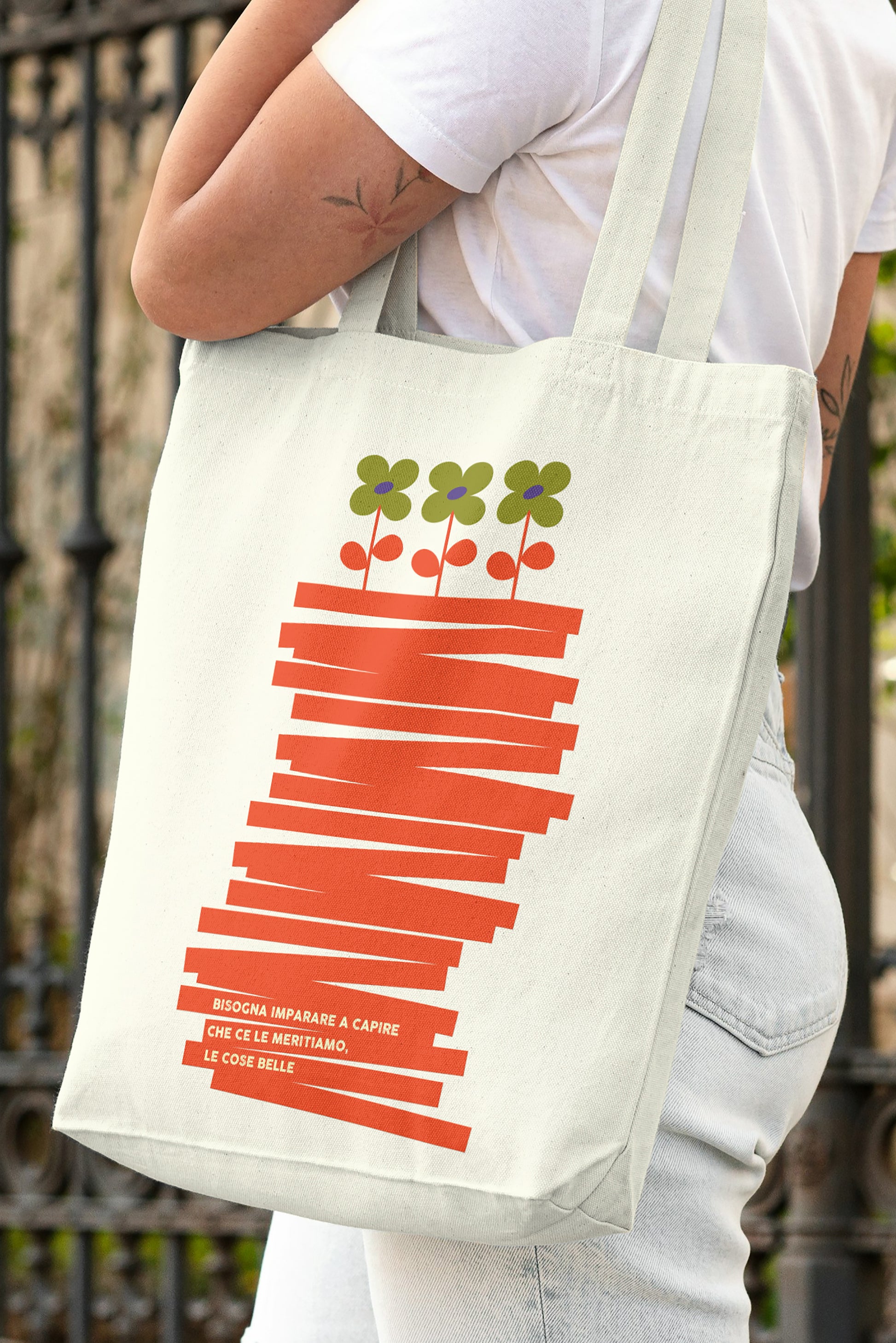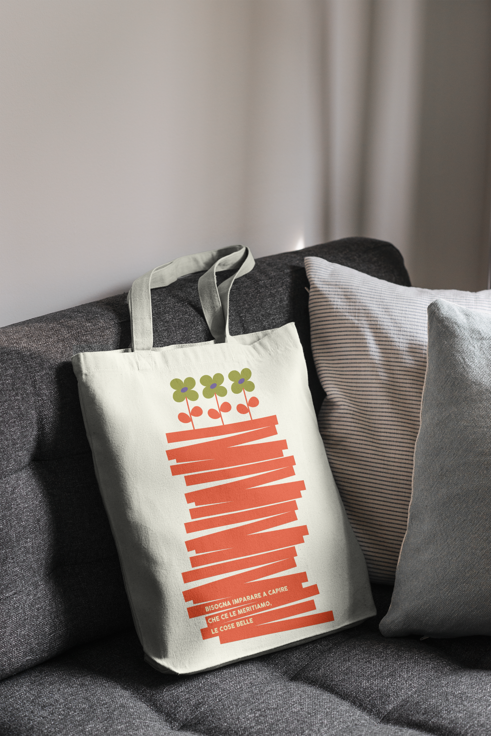 Tote bag in cotone organico certificato. Ha i manici lunghi e unisce la comodità del modello alla sostenibilità ecologica del materiale di produzione.