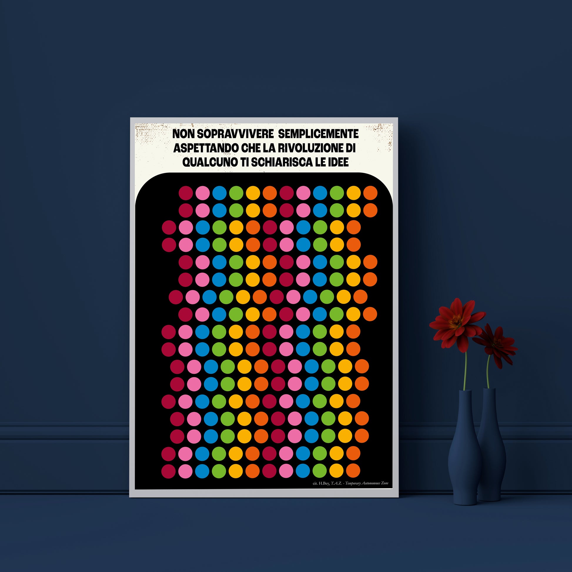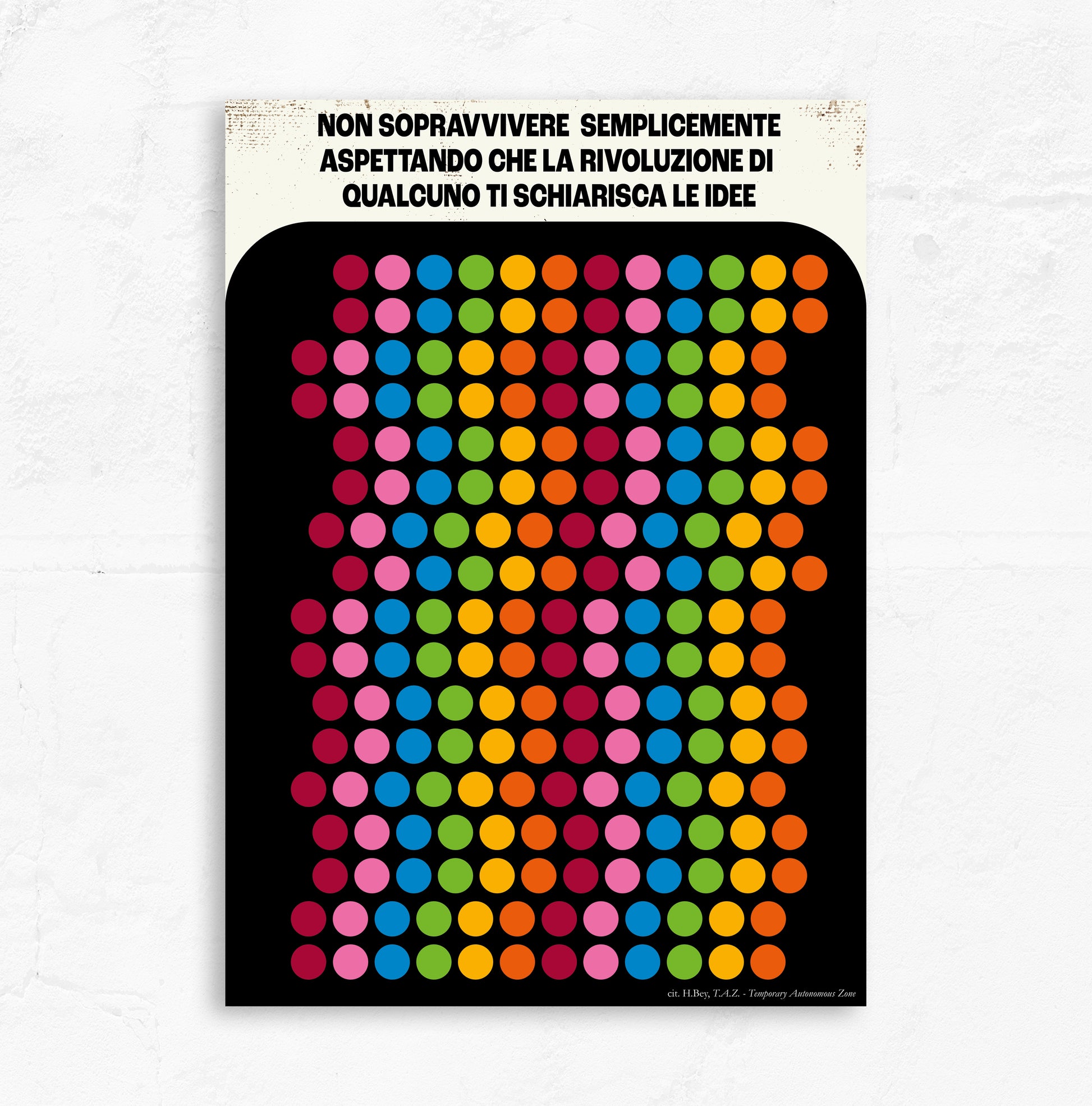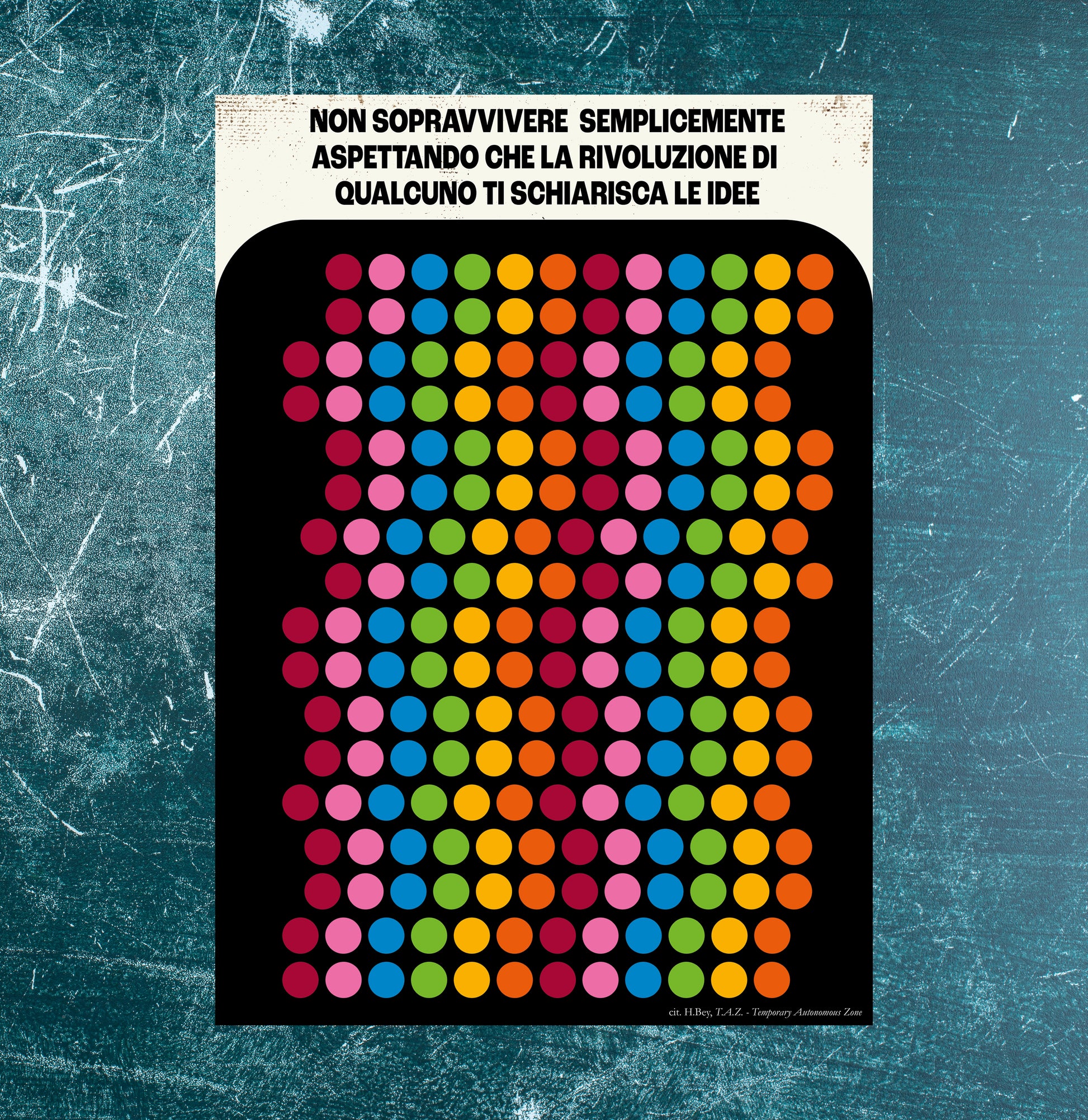 "Non sopravvivere semplicemente aspettando che la rivoluzione di qualcuno ti schiarisca le idee" - manifesto dedicato al filosofo Hakim Bey. La citazione è tratta dal saggio "T.A.Z. - Temporary Autonomous Zone"
