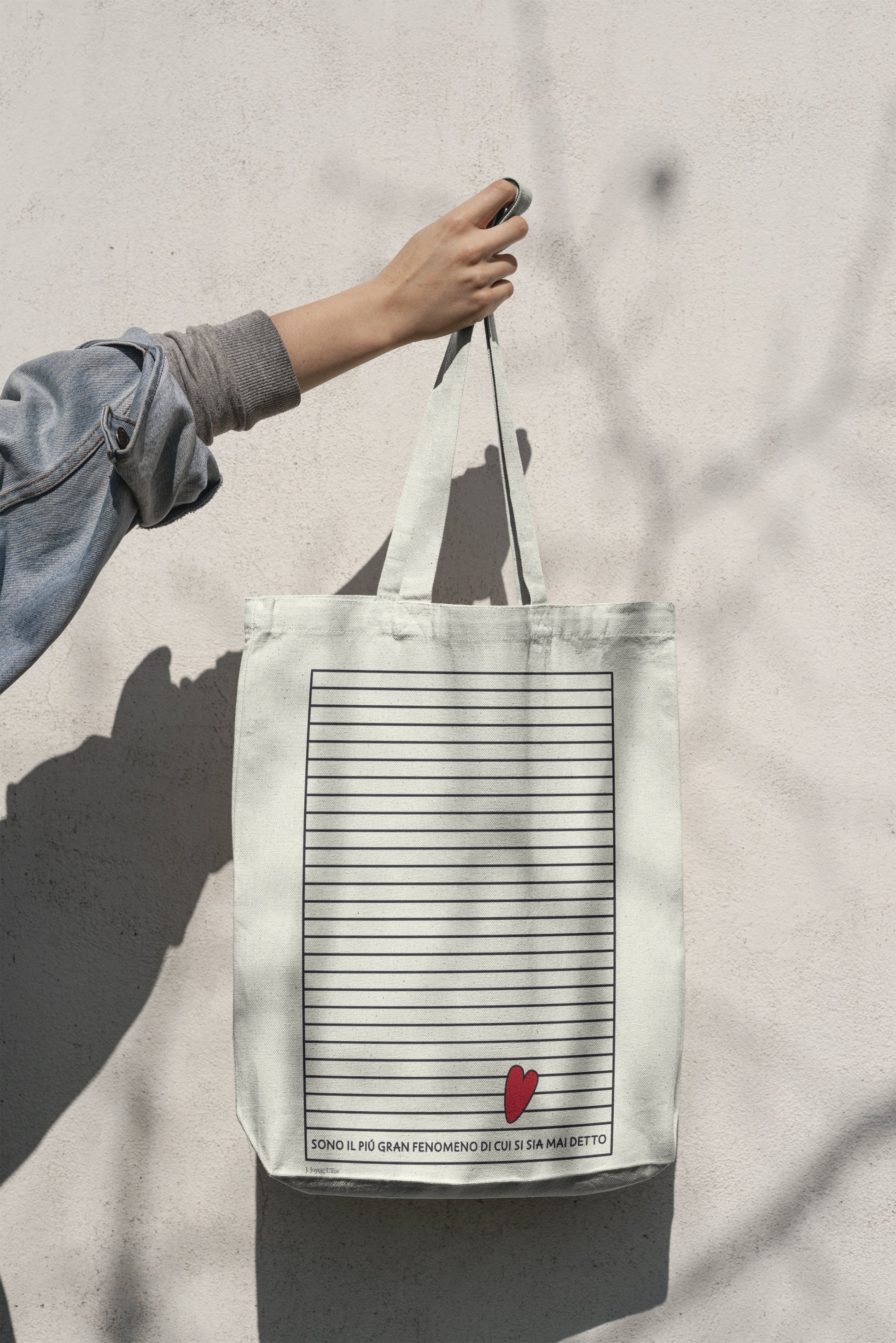 Tote bag in cotone organico certificato. Ha i manici lunghi e unisce la comodità del modello alla sostenibilità ecologica del materiale di produzione.
