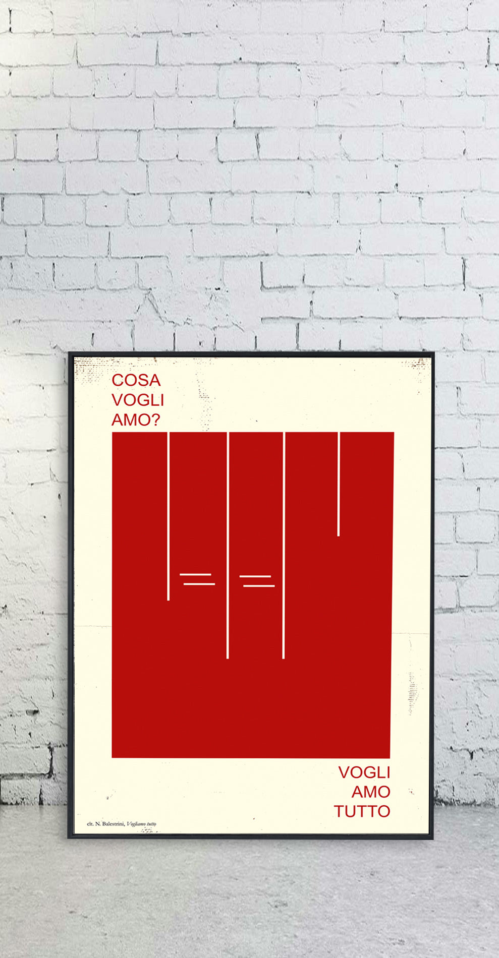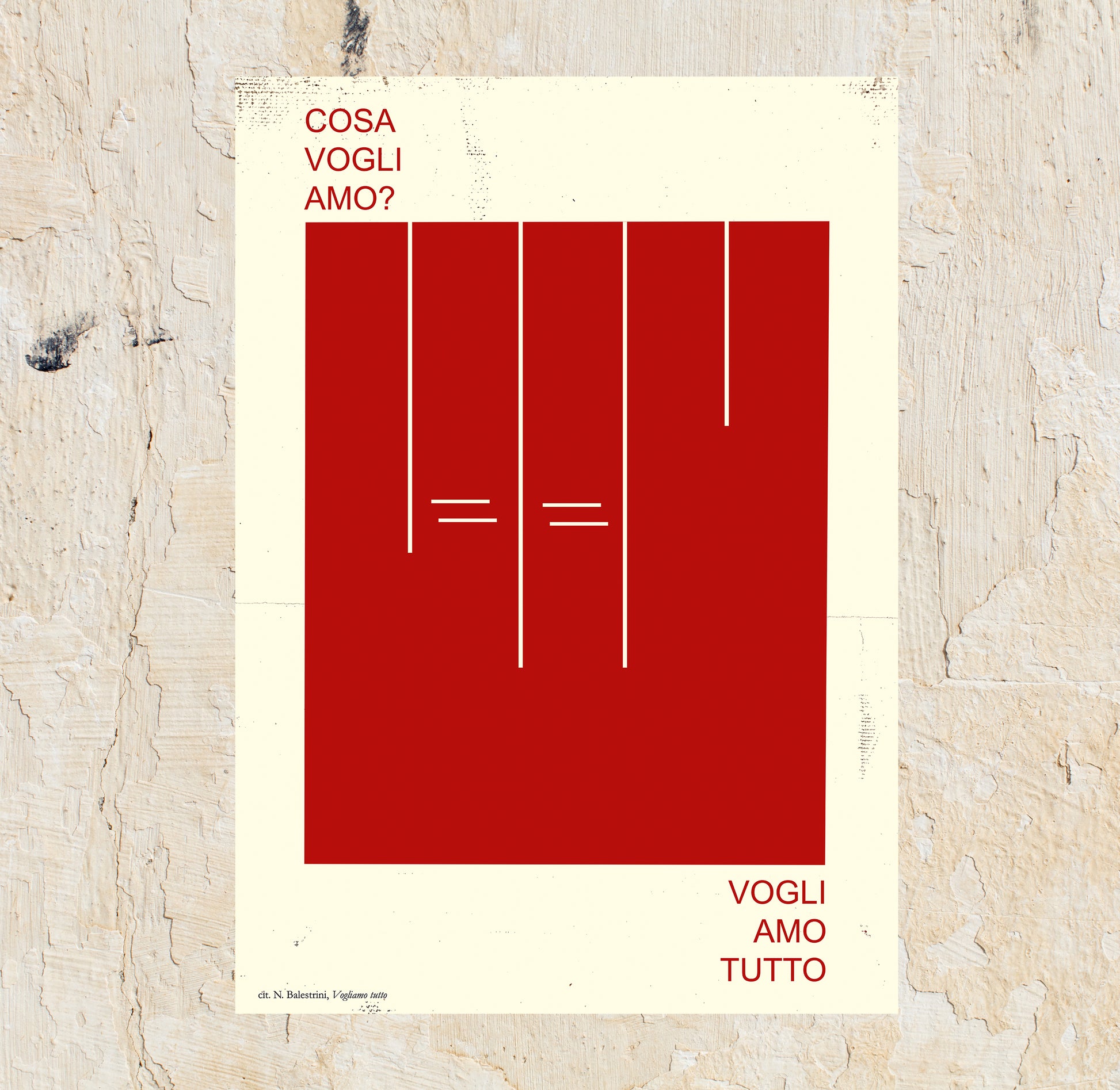 "Cosa vogliamo? Vogliamo tutto" - manifesto omaggio allo scrittore N. Balestrini. La citazione è tratta dal romanzo "Vogliamo tutto"