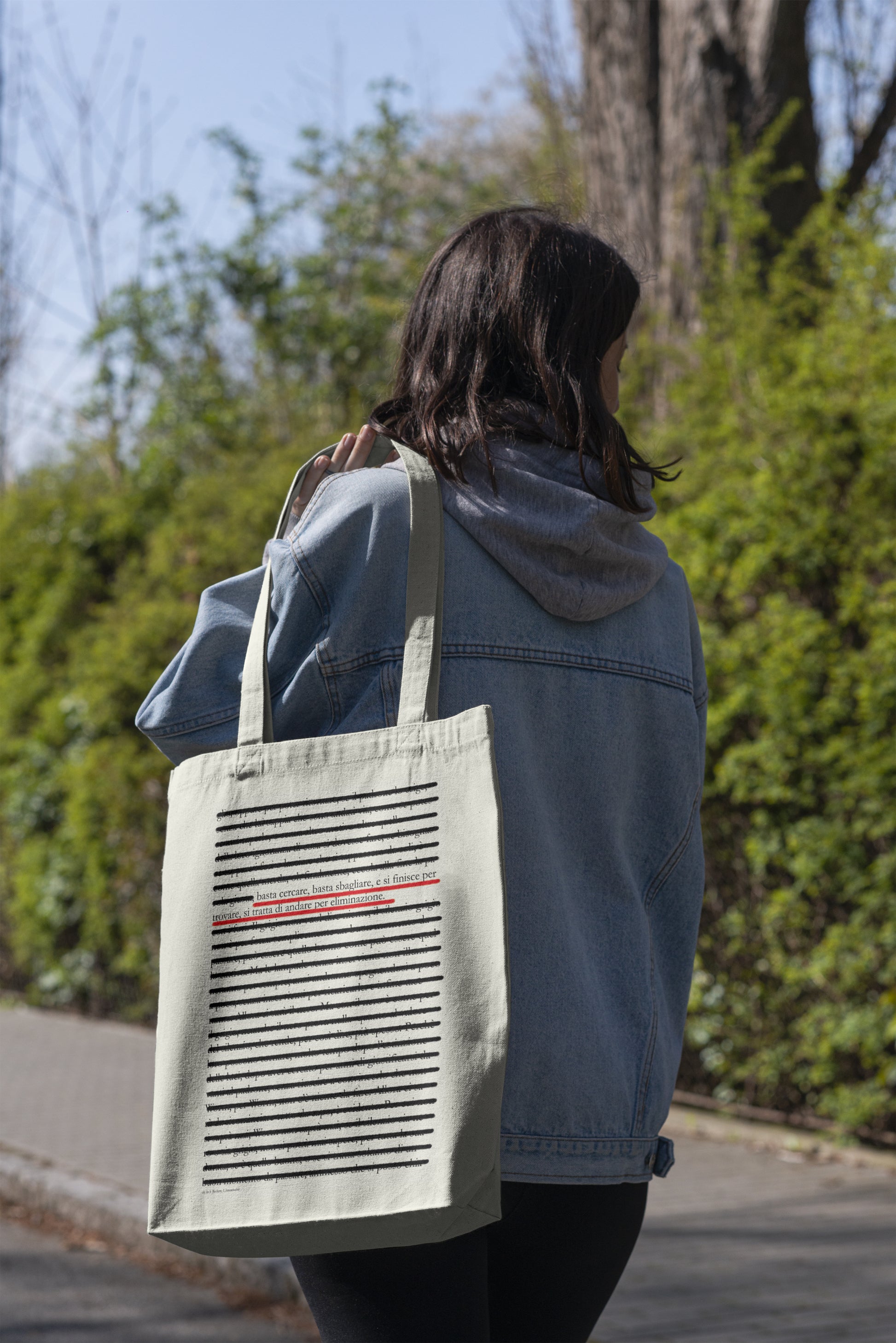 Tote bag in cotone organico certificato. Ha i manici lunghi e unisce la comodità del modello alla sostenibilità ecologica del materiale di produzione.