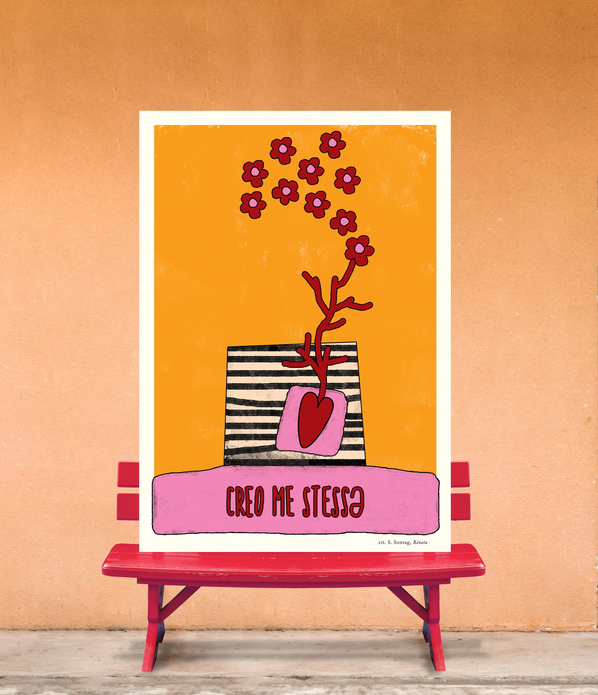 "Creo me stessǝ" - manifesto dedicato a Susan Sontag. La citazione è tratta da "Rinata. Diari e taccuini 1947-1963"