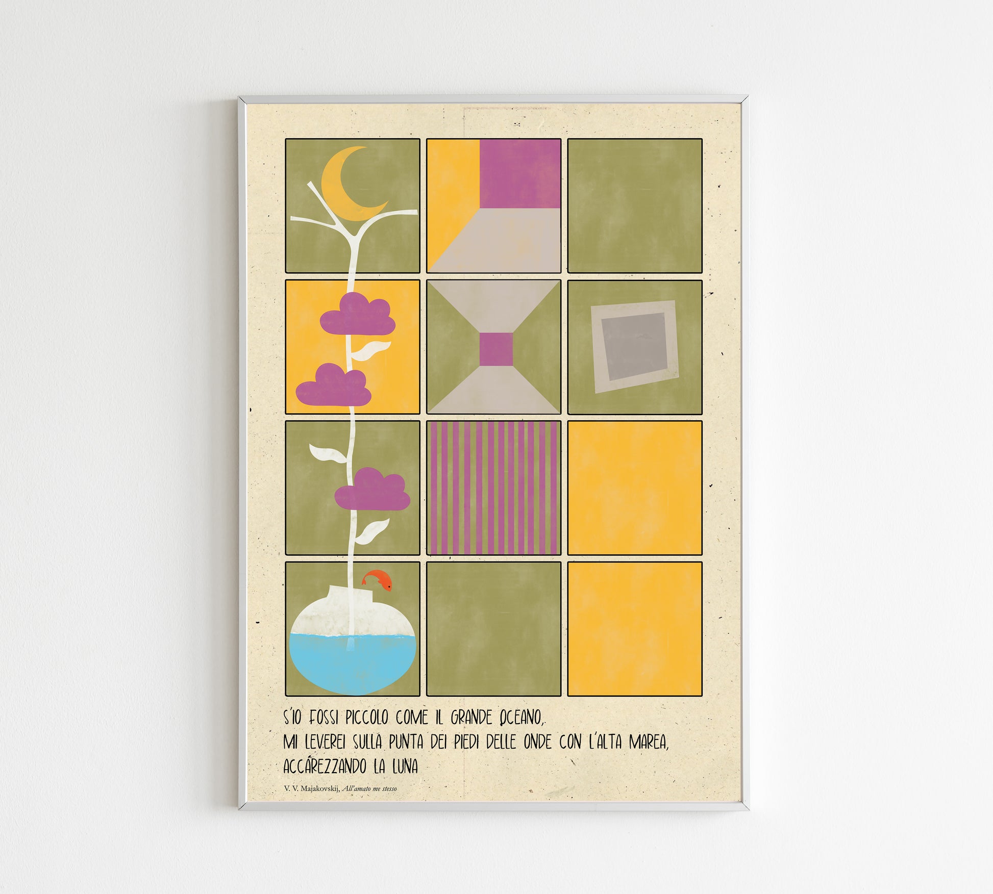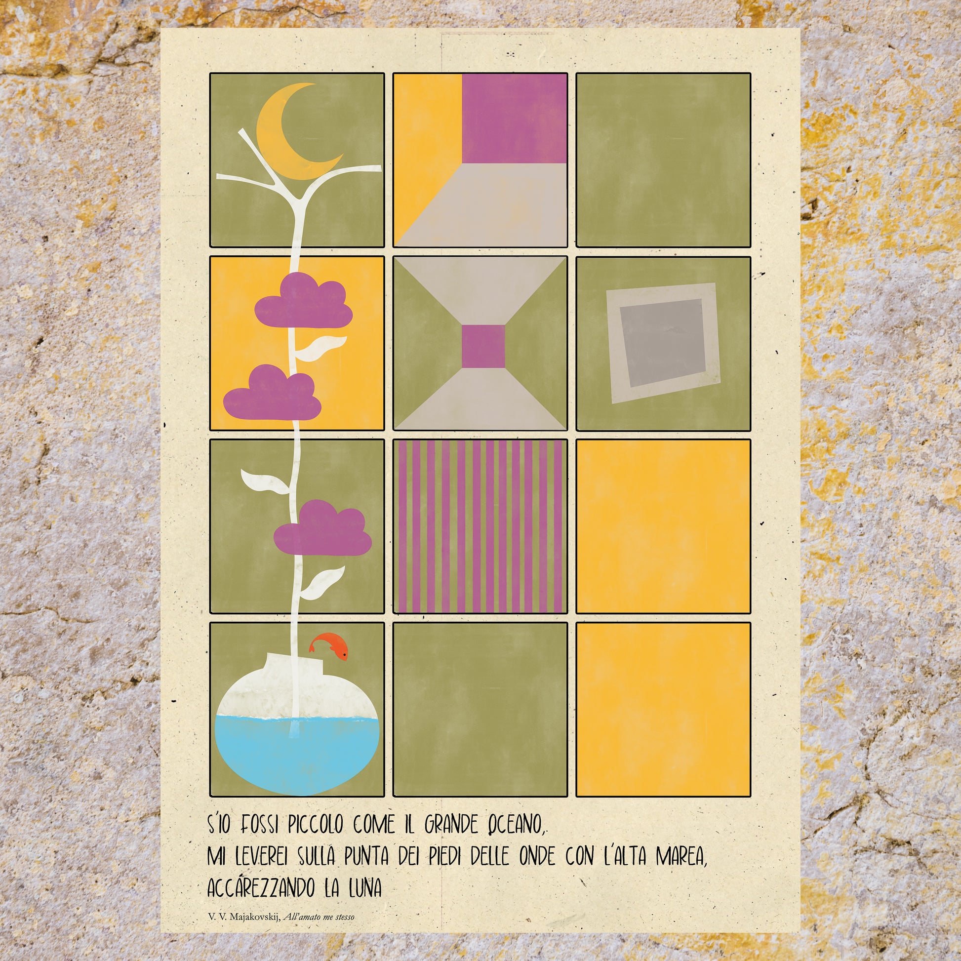 "S'io fossi piccolo come il grande oceano, mi leverei sulla punta dei piedi delle onde, accarezzando la luna" - manifesto dedicato al poema "All'amato me stesso" del pèoeta russo V. V. Majakovskij