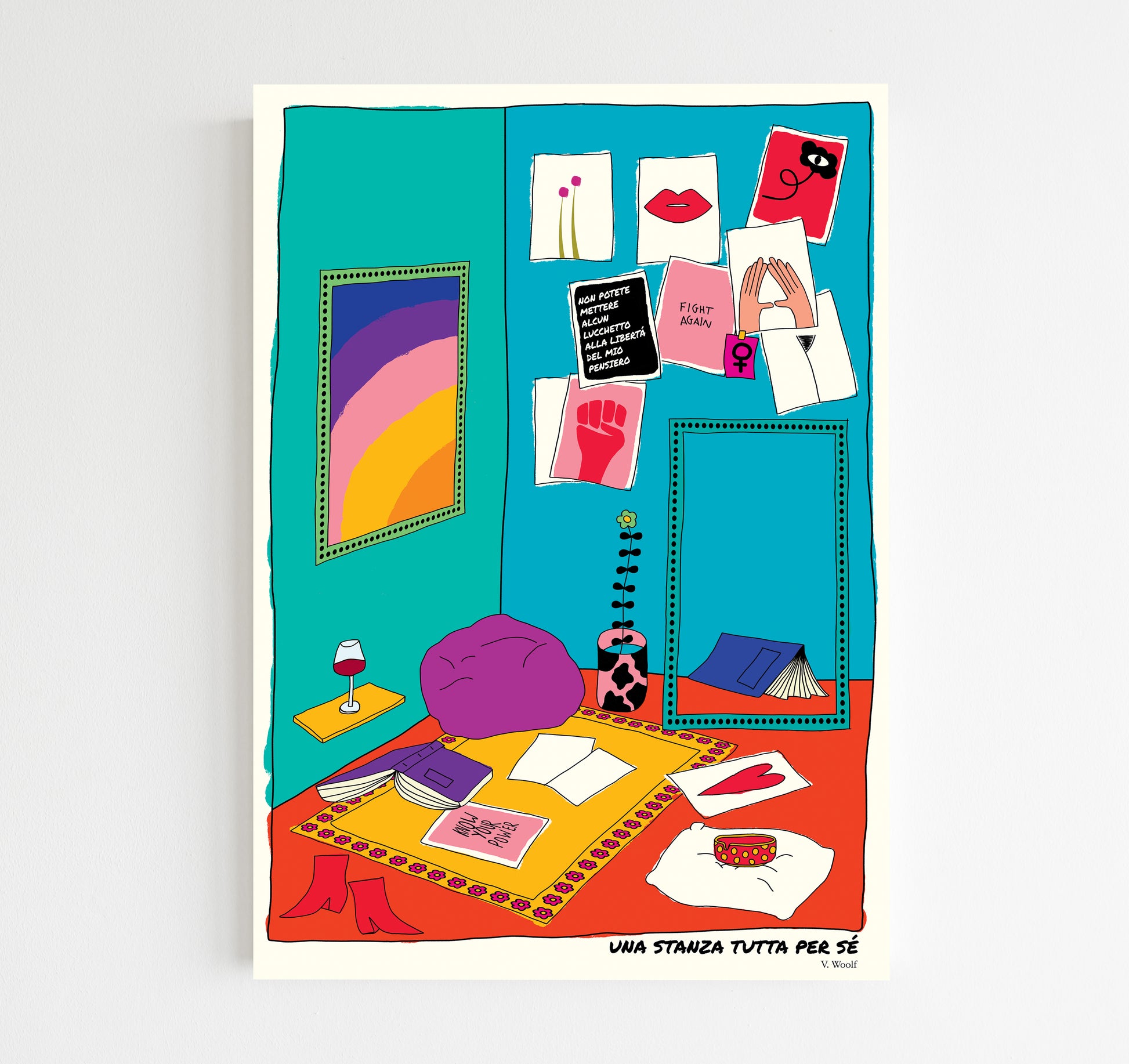 "Non potete mettere alcun lucchetto alla libertà del mio pensiero" - manifesto dedicato a Virginia Woolf. La citazione è tratta da "Una stanza tutta per sé"
