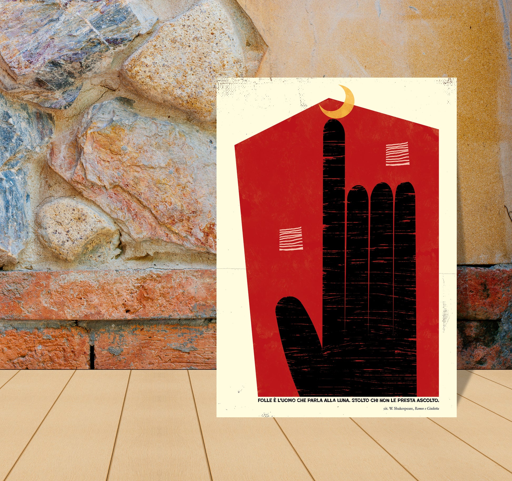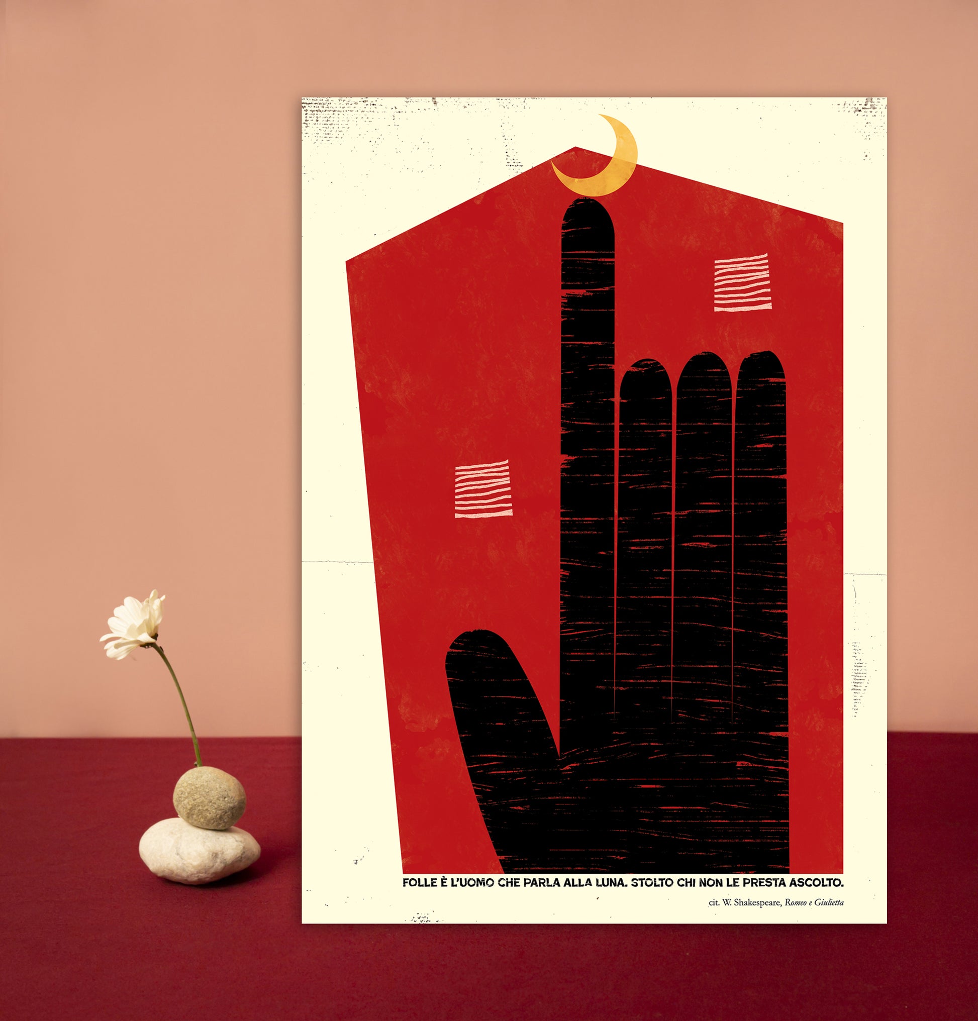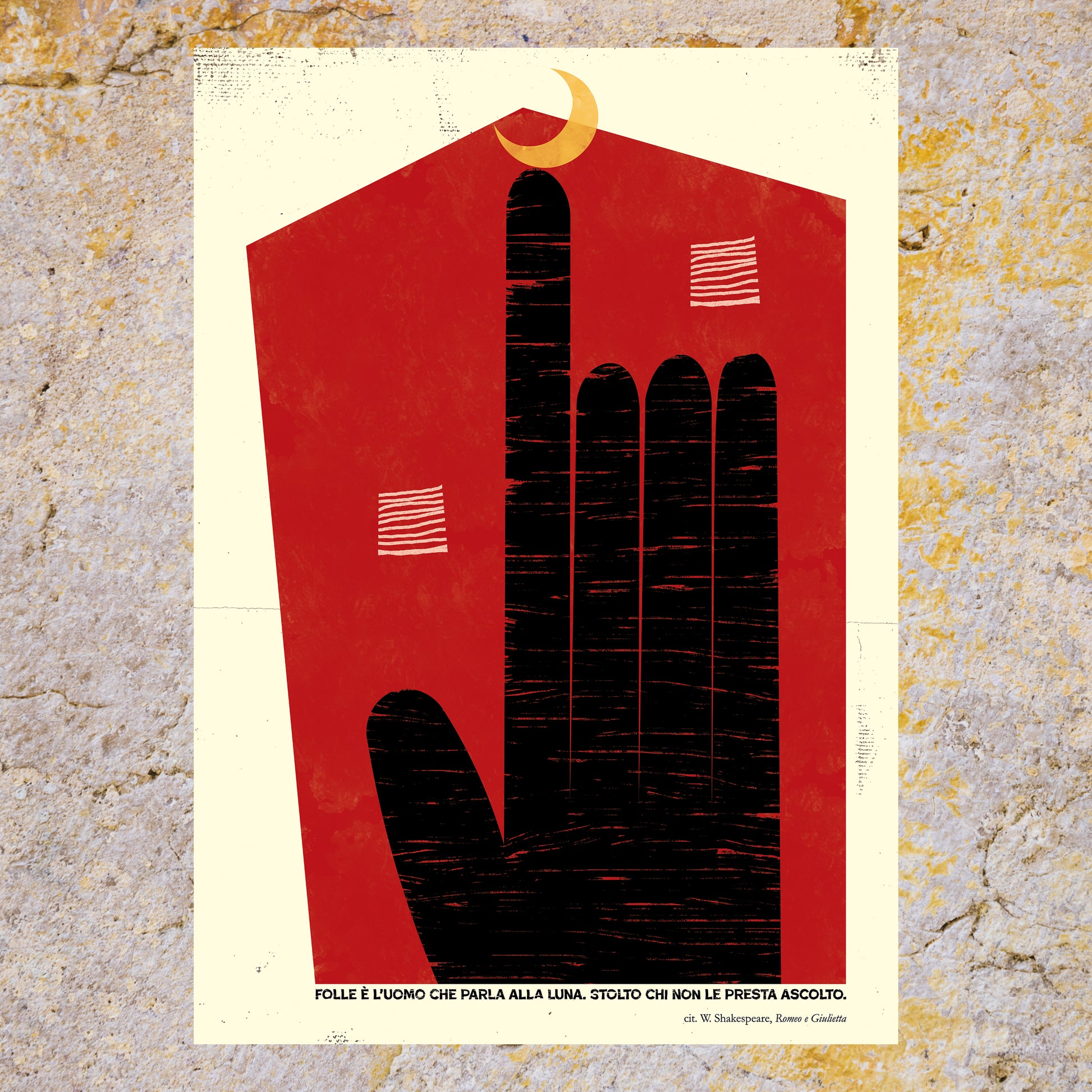 "Folle è l'uomo che parla alla luna. Stolto chi non le presta ascolto" - manifesto dedicato al romanzo "Romeo e Giulietta" di W. Shakespeare